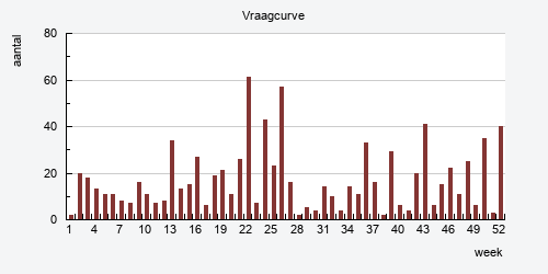 Kies aan de hand van het vraagdiagram een bestelpunt, waarmee het gewenste serviceniveau wordt bereikt en de gemiddelde voorraad zo laag mogelijk wordt gehouden.